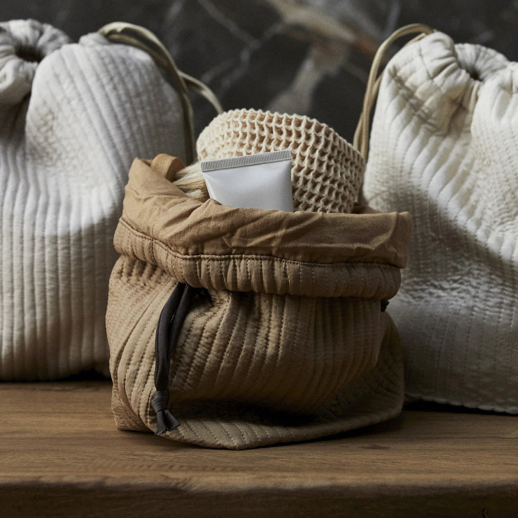 Brug silkeposen til at opbevare dine AYU-plejeprodukter, accessories eller småting på badeværelset, eller som elegant rejsetaske til undertøj og favoritprodukter. Den kan hænges på en knage, ligge i kufferten eller pynte i garderoben.