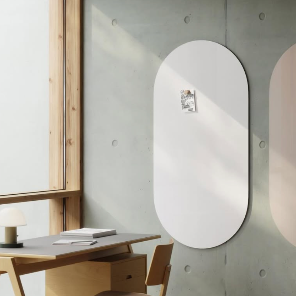 CHAT BOARD® Ambit har givet form til en helt ny anskuelse af den vægmonterede magnetiske glastavle. Som dens nære relationer i den eftertragtede Orbit kollektion er Ambit rundet af kurvede former, der denne gang er omdannet til en velproportioneret oval, frembragt ved at dele cirklen i to og føje den til et centralt placeret kvadrat.