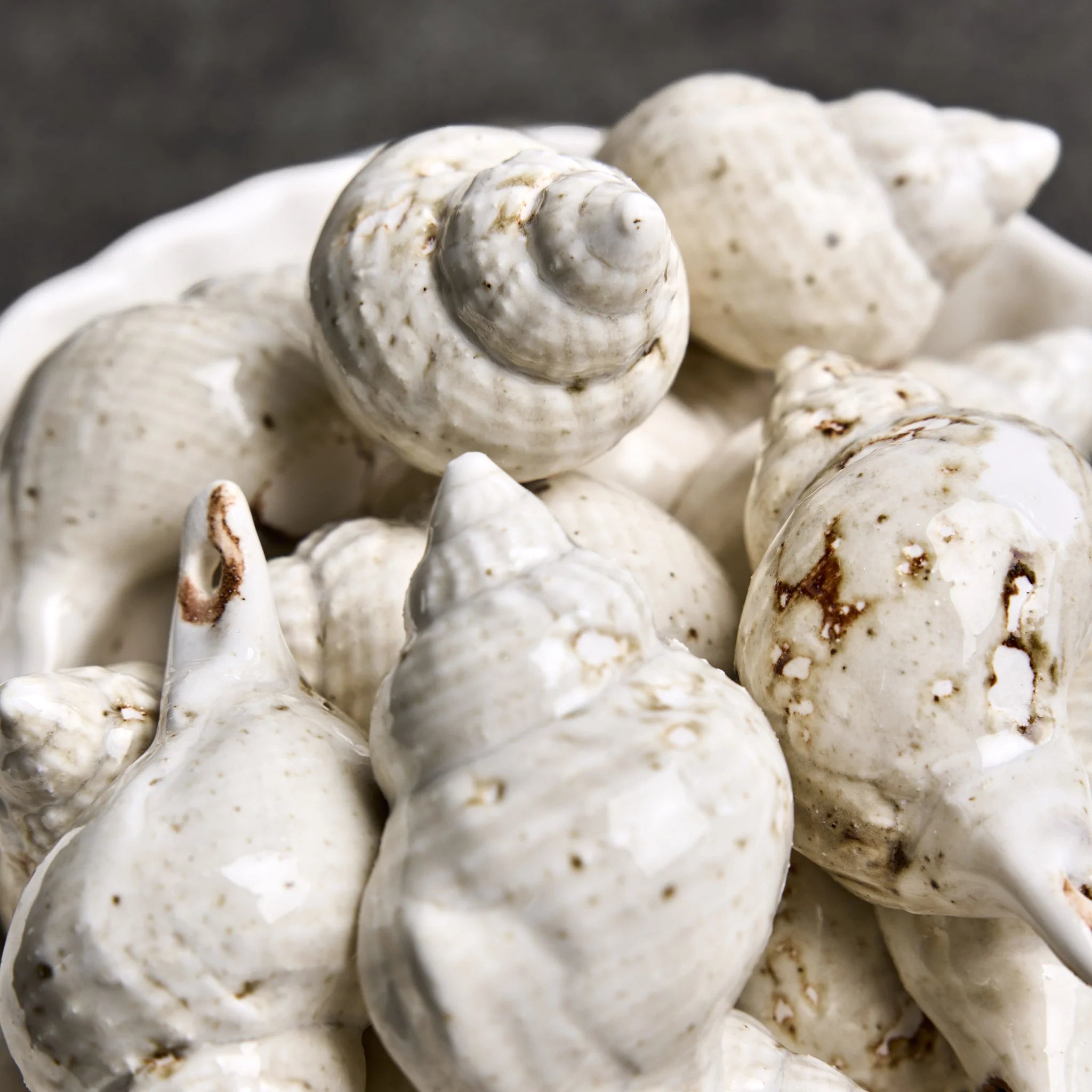 Smuk håndlavet konkylie fra Christina Iversen Studio i keramik. Hver enkelt konkylie har en unik glaseret struktur, der henleder tankerne på danske sandstrande. En fin detalje der kan pynte hvor som helst.