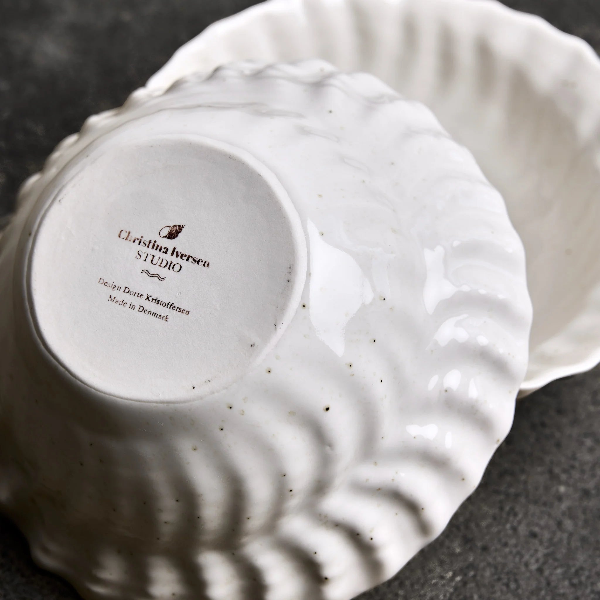 Smuk håndlavet skål fra Christina Iversen Studio i keramik. Hver enkelt skål har en unik glaseret struktur, der henleder tankerne på danske sandstrande. Brug den som skål til morgenmaden, eller server lækkerier i den, når du har gæster.