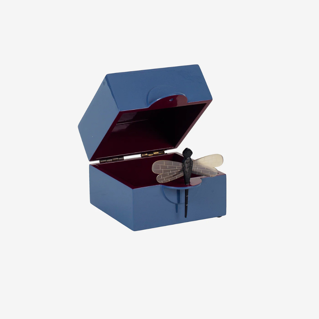 En kompakt og stilfuld lakæske, perfekt til mindre opbevaringsbehov. Den denimblå yderside kombineret med beetroot indvendigt giver et eksklusivt og grafisk udtryk, der passer smukt ind i både soveværelse og stue.