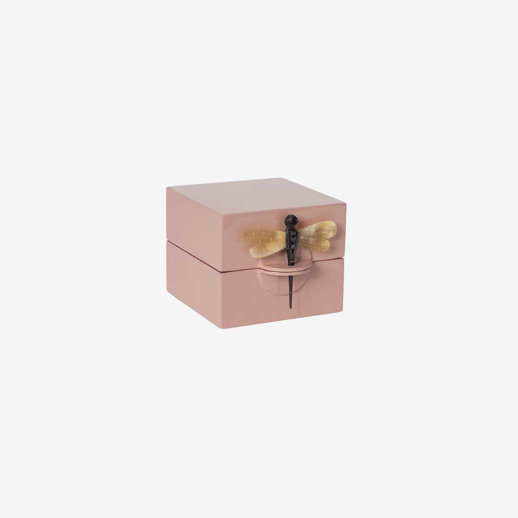 Lille lakæske med et elegant og let udtryk. Den powder-farvede yderside og passion-farvede inderside skaber en smuk kontrast og gør æsken både dekorativ og funktionel – ideel til smykker og små hverdagsting.