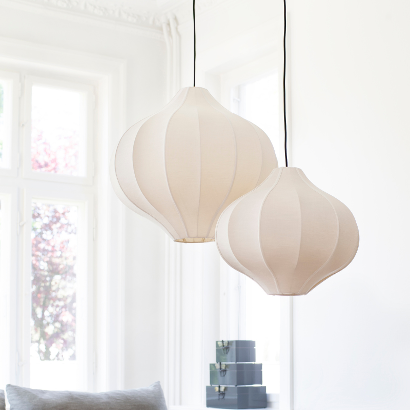 Smuk løgformet lampeskærm i Raw Sand fra Oi Soi Oi til at hænge i dit soveværelse eller over spisebordet.