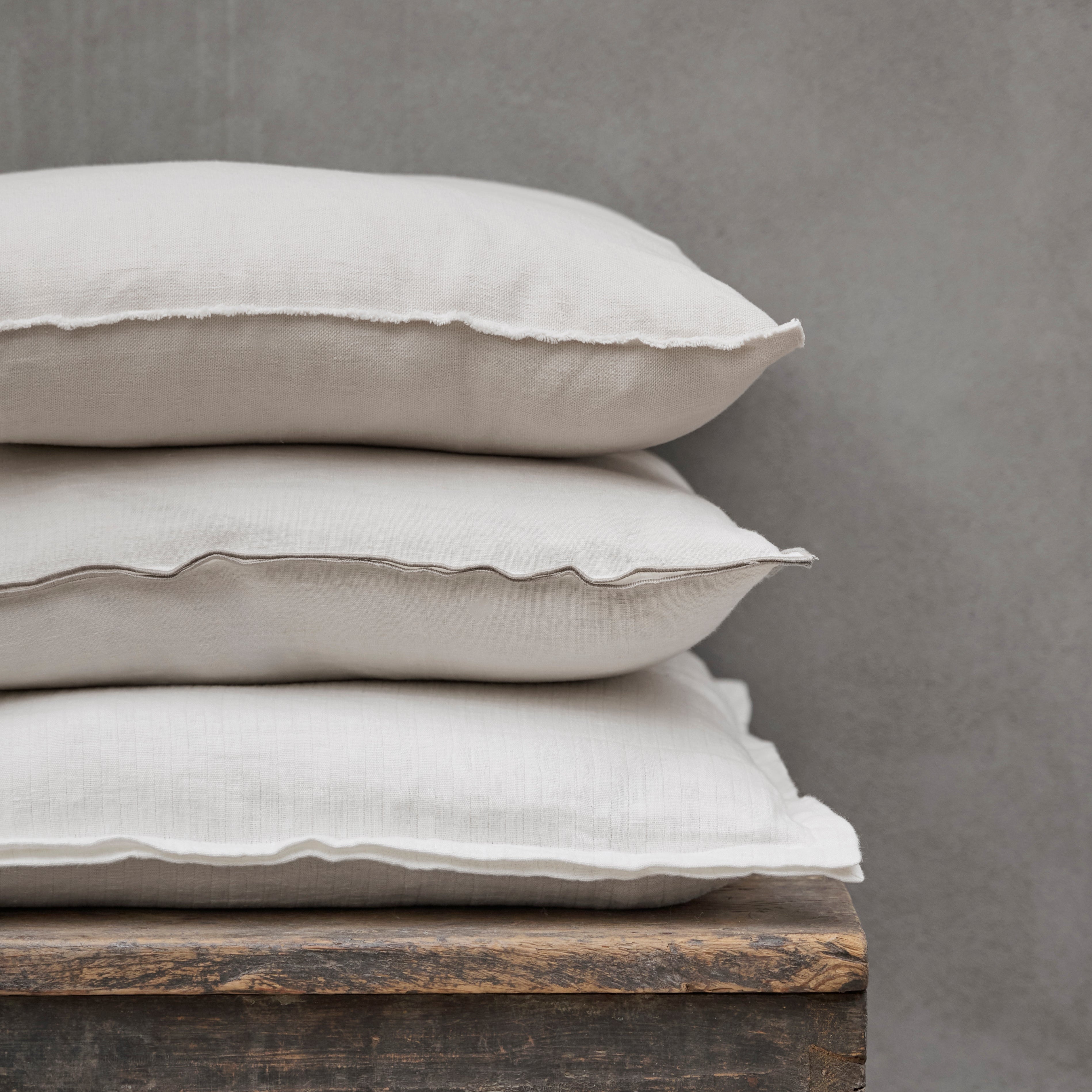 Merrow Heavy-puden, skabt af Space Copenhagen, kombinerer underspillet elegance med taktil komfort. Fremstillet i 100% europæisk hør, vævet i kraftigt lærred og med en dekorativ kontrastkant, tilfører puden en raffineret detalje til ethvert rum.